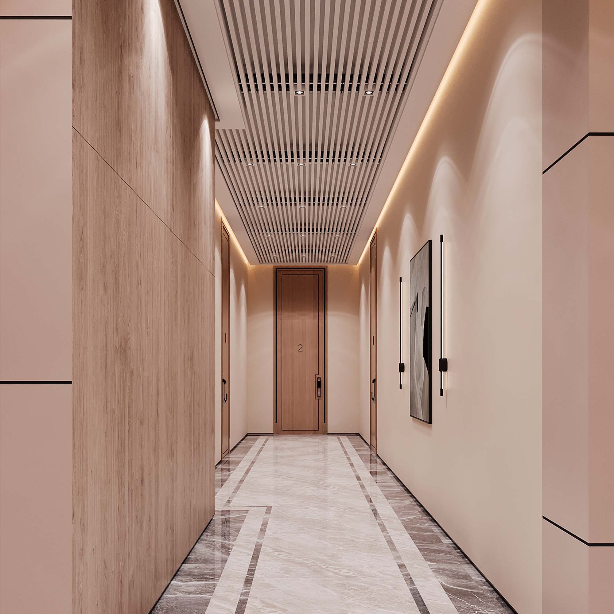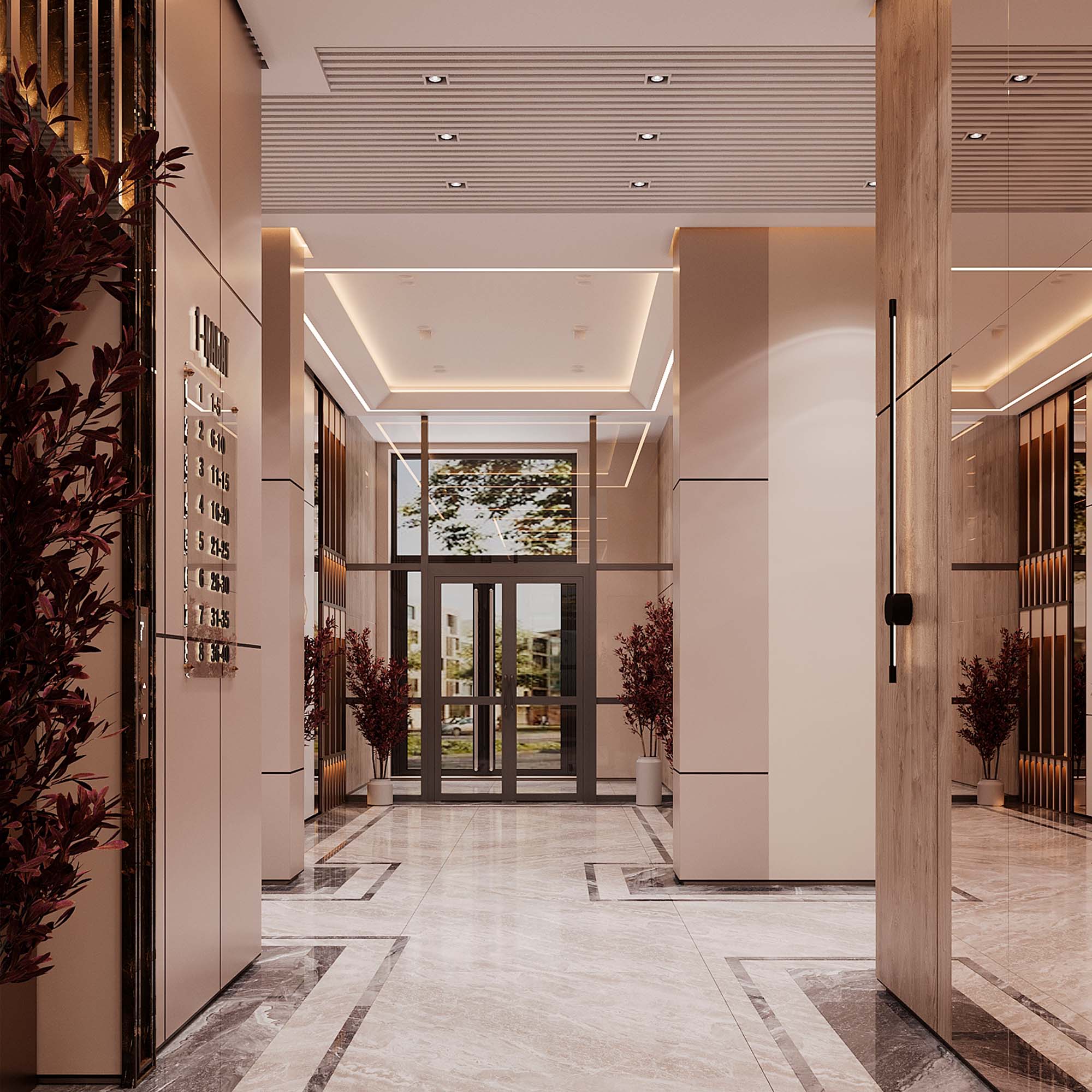 Входные холлы с авторским дизайном подчёркивают статус дома. Простор, тишина, благородные материалы. Сквозные подъезды открывают выход как на внутренний двор, так и на проездную часть — удобно и без компромиссов.
